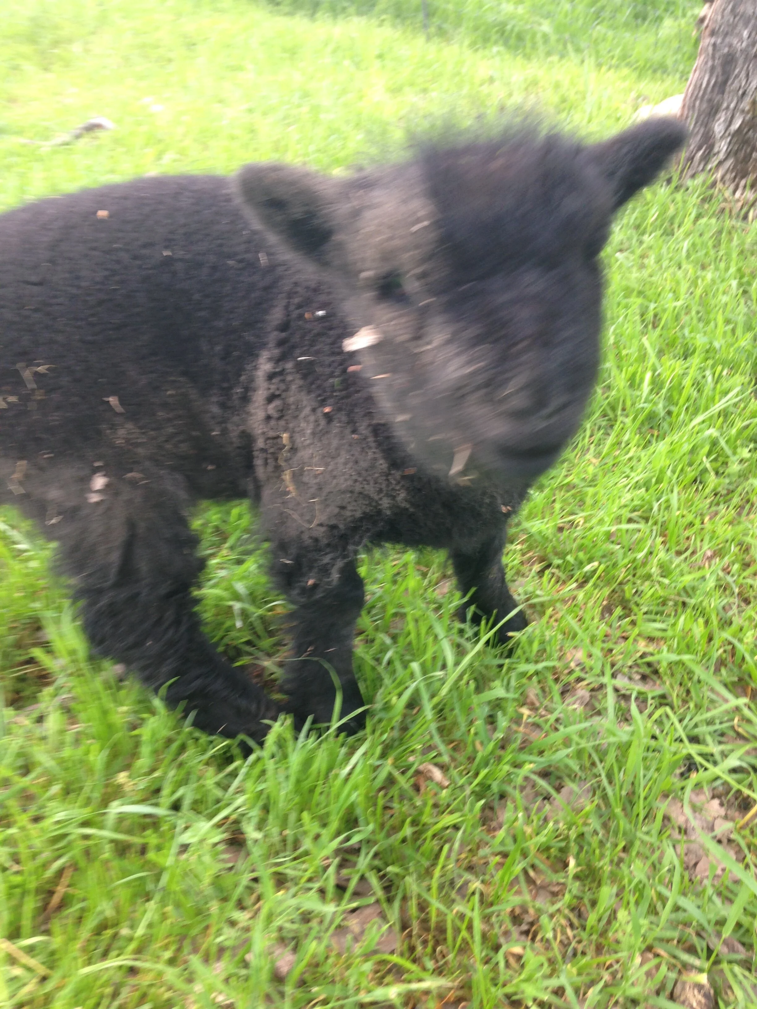 We are breeding specifically for orchard and vineyard management, while upholding and improving the breed. Our lambs and adults are raised together as pasture pets in close and affectionate relation to people and around many other animals in an organic setting. All of our black and off-white lambs are registered with both OEBSR and NABSSAR, while our spotted lambs are registered only with OEBSR per registry standards. We keep a closed and disease-free flock.